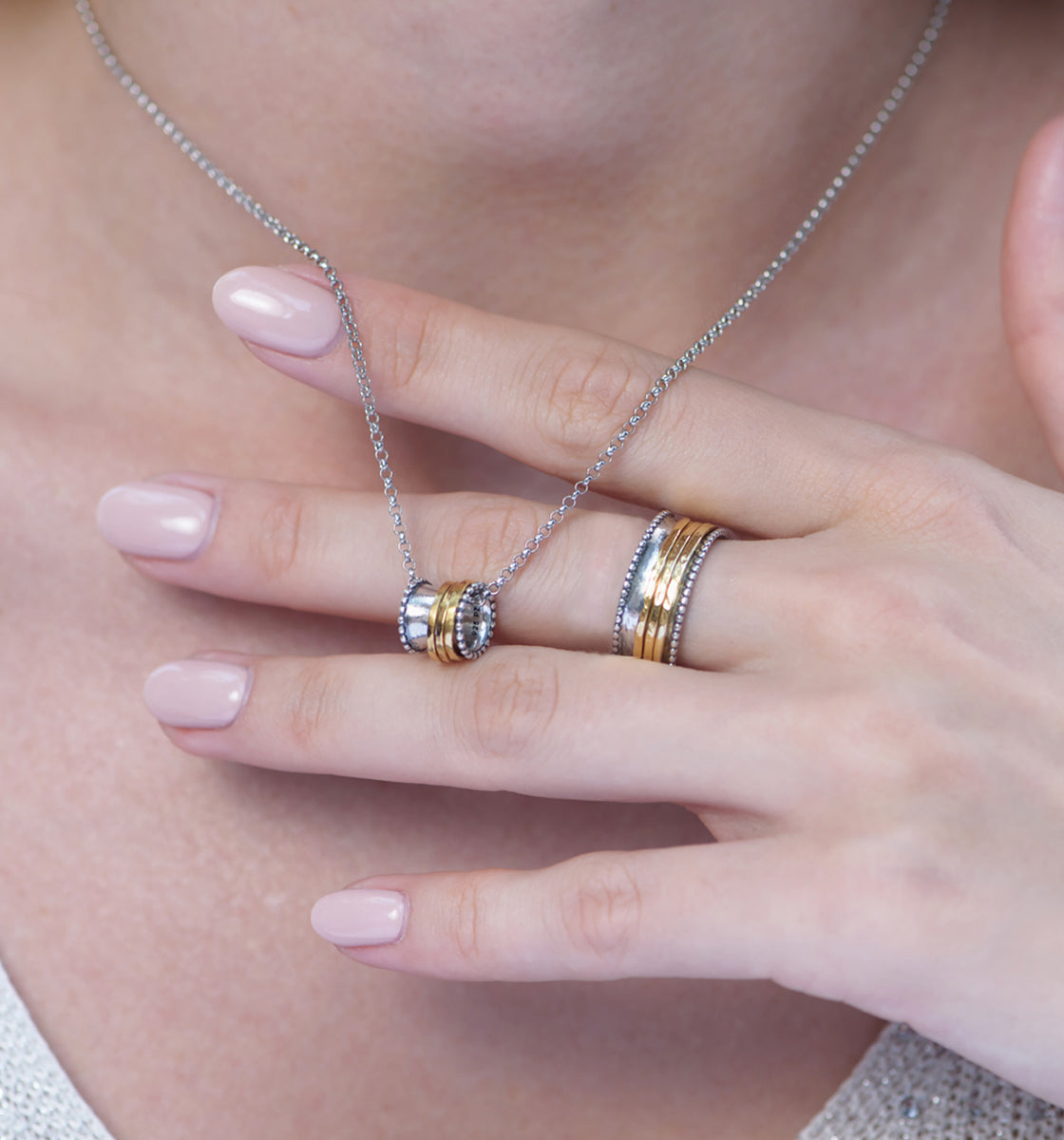 סט תכשיטים משולב של עגילים, שרשרת וטבעת בעיצוב קארמה עיגול פתוח מזהב 14 קארט